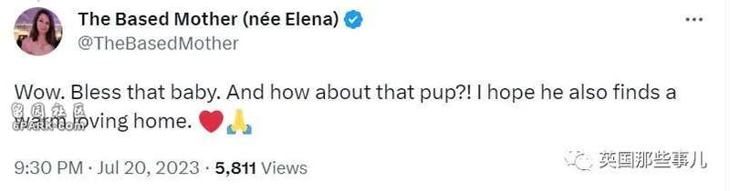 “哇。祝福那个小宝宝。那只小狗怎么样了?希望它也能找到一个温暖有爱的家。”
