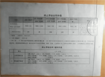 對於工廠的員工,公司給予的補償方案為N+1打底,這裡的N還不是勞動法中的合同工資,而是按照平均工資算;然後加工齡補貼,工作大於5年的補貼為三個月,2-5年的補兩個月,1-2年補一個月。當天簽約還還有兩千塊錢獎勵。