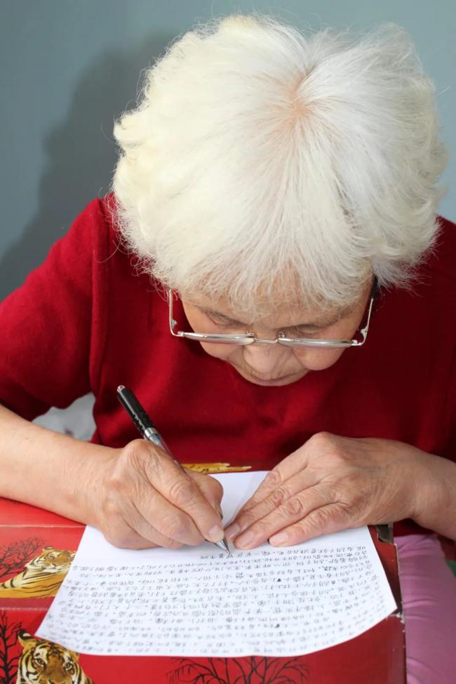 60歲那年秋天,老伴因車禍離世,姜淑梅悲痛欲絕,整夜整夜睡不著覺。為了幫母親轉移注意力,在大學任教的大女兒艾苓勸姜淑梅學認字,學寫作。