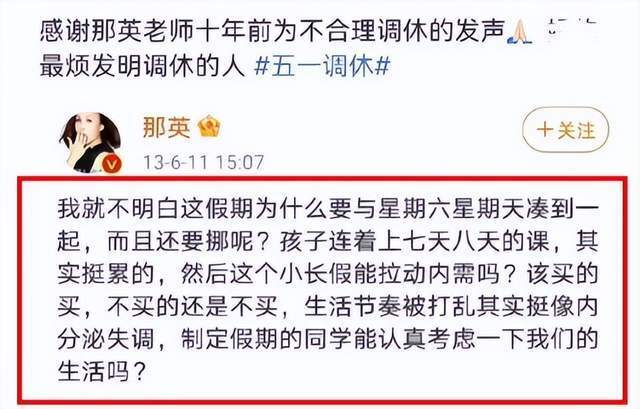 甚至有網友扒出十年前,那英吐槽“調休機制”的發言: