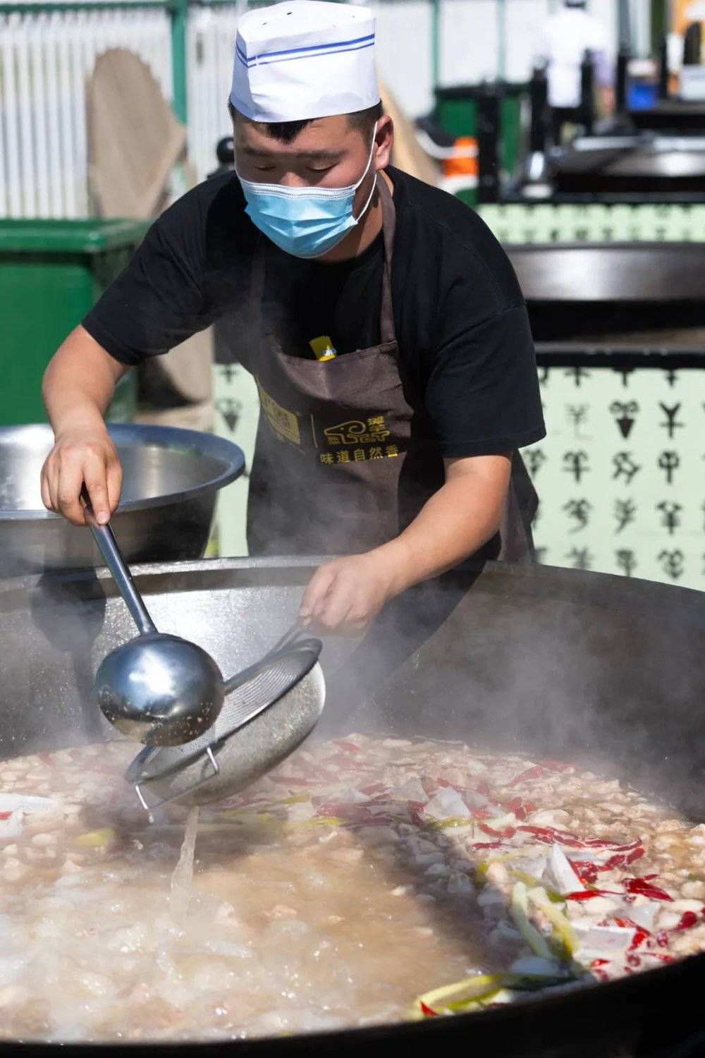 然后喊声此起彼伏:有要吃前腿的,有要吃肋排的,有要吃脖子的,每个人说好了哪一块,都先记下,然后就把羊肉丢进锅中。几十分钟不到,羊肉的香气一缕一缕地往外窜,一里地开外也嗅得到。