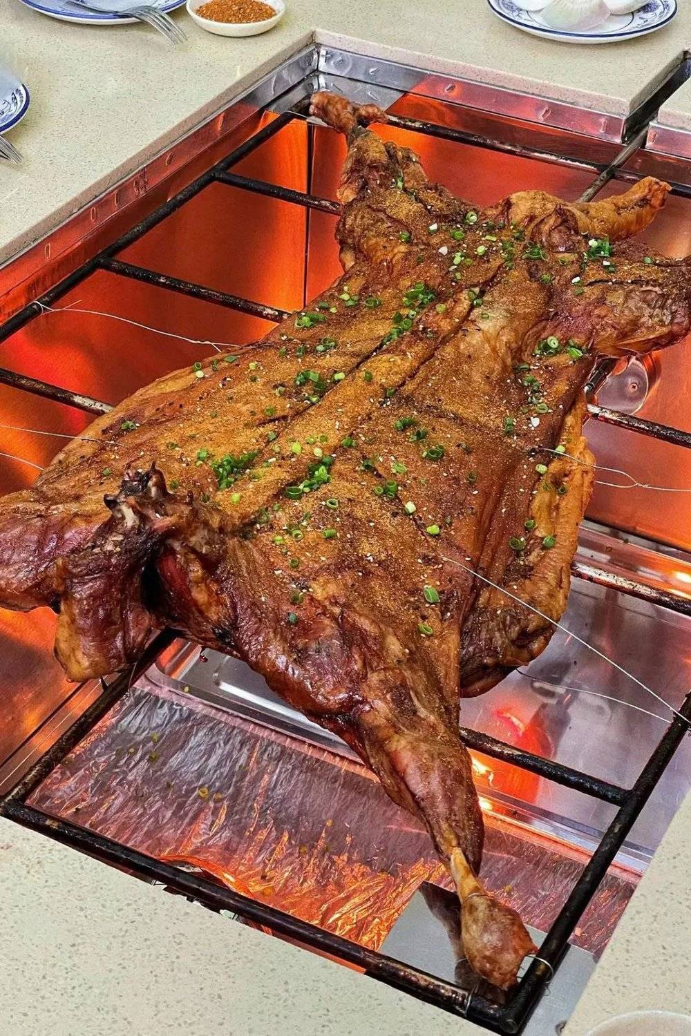 烤全羊也是西北大地上绕不过的一道美味,每个吃过盐池烤全羊的人,必定会被那种色泽金黄、焦香四溢的体验迷倒,地道的盐池烤全羊一般以二十多斤的成年羯羊为宜,这个标准下烤出的羊肉口感脆嫩,不会过于“缩水”;而另一重风味密码则藏在酱料的配比上。