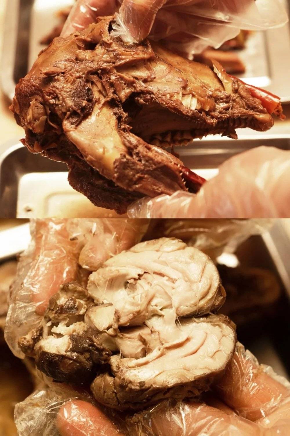 羊头,是盐池人对滩羊美味的另外一种执念,卤上一天的羊头咸香入味,厚重的香料将每块肉都调教出独特的风味。羊头难啃,但盐池人有自己“庖丁解羊”的专属技法,先从头皮正中划开一道口,将头肉扒向两边,再从鼻骨处往上一掀即取下,将羊眼睛挑出,再将颅骨掰开,取出羊脑。接下来,从羊头肉上切下两耳和口腔上膛的软骨,最后贴着羊舌头,两侧各一下,将聘骨切断,便能完整地拆下两块。