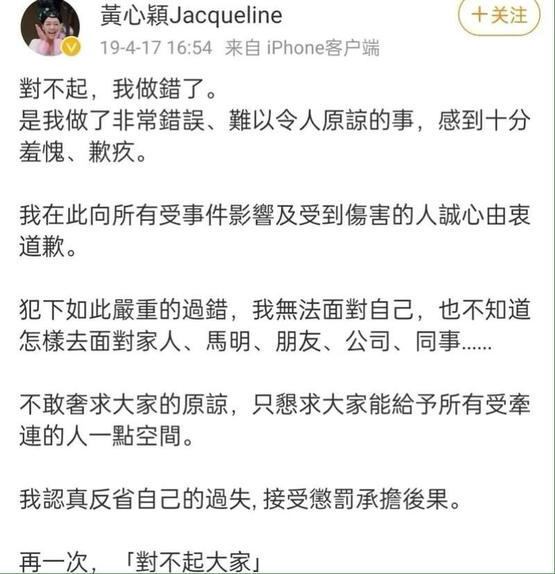 当然,在事发后,黄心颖有真诚道歉,并认真反省过失,愿接受惩罚。