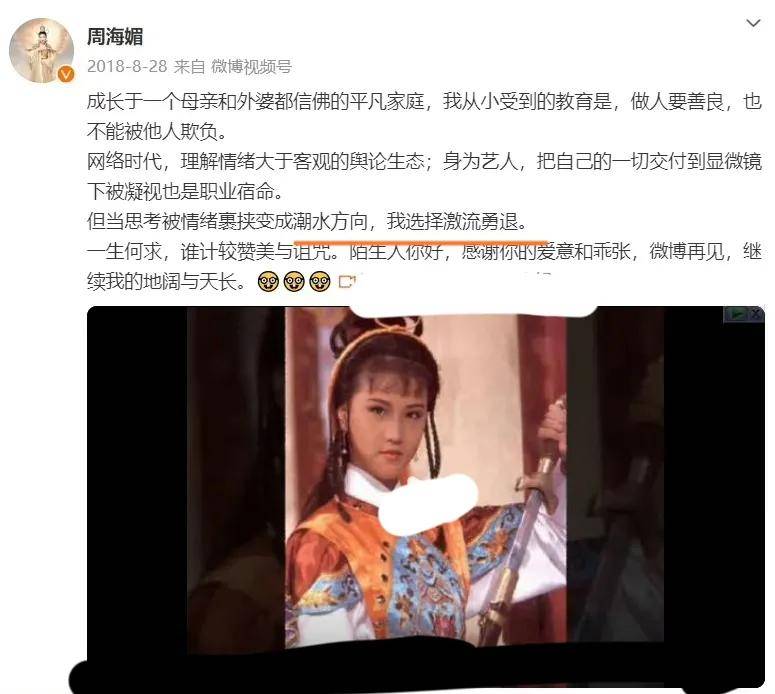 以至于周海媚最后只好把其中一个社交平台关闭,再也没有更新过。