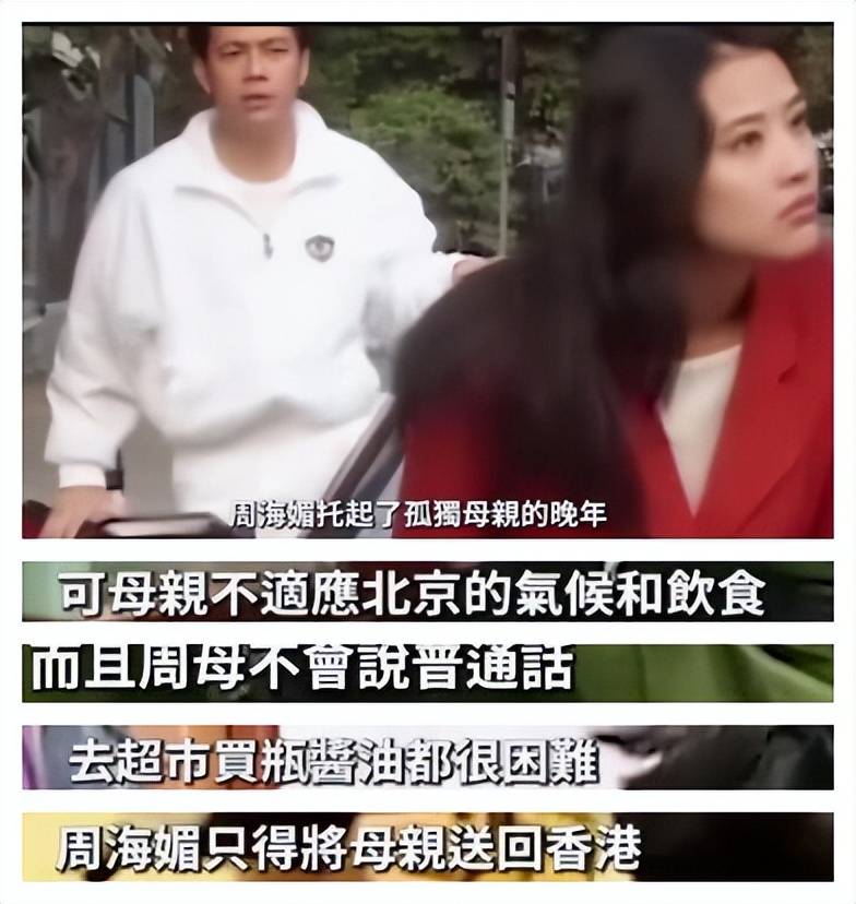 只不过母亲不适应北京的气候与饮食,最重要的是,周海媚的母亲不会讲普通话,连去超市买东西都不行,万般无奈之下,最后只能把母亲又送了回去