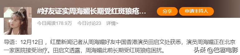 可事实上周海媚从未承认过自己得过红斑狼疮,甚至还多次辟谣,称自己只是血液不容易凝固。
