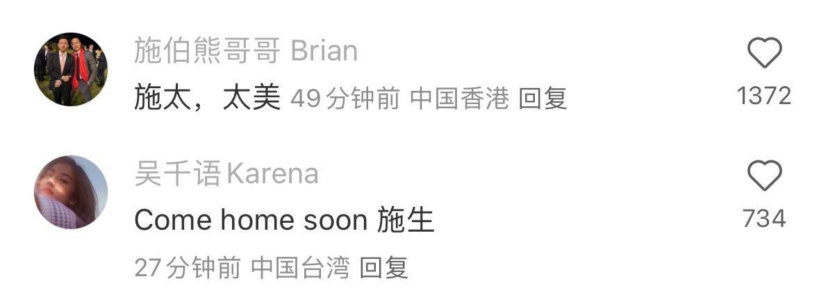 而吳千語則回以施伯雄“施生”,要其“快快回家”,盡顯新婚蜜裡調油之態,同時也在領證文案中寫道:“現在開始計劃婚禮!”