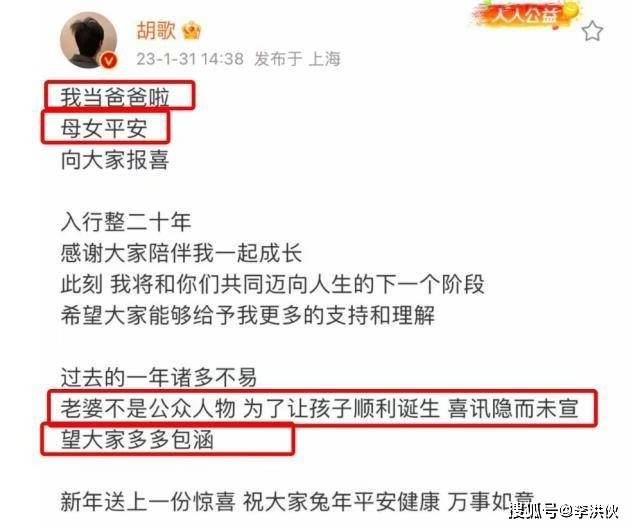 直到2023年1月胡歌在微博官宣生女时,一句“老婆不是公众人物”,又让胡歌当年被冠以“妈宝男”的采访被翻出。