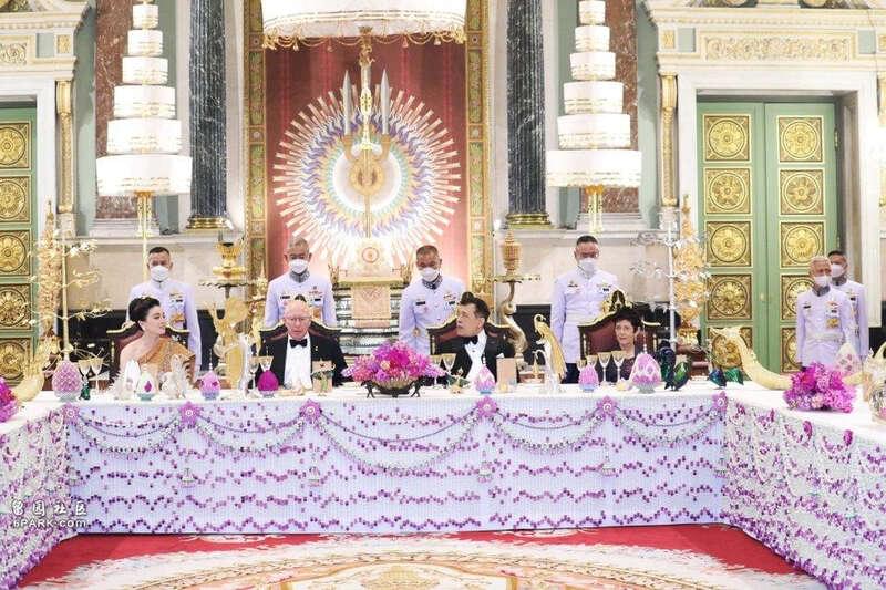 虽说苏提达尽显雍容,但拉玛十世所举办的国宴看着却不那么“大气磅礴”,也不知道是照片拍摄的缘故,还是事实就是如此,总感觉有点儿局促,尤其是桌布,更是带着几分学校联欢会的感觉。