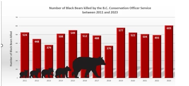 (加西网综合)根据 BC 省保育机构(COS)的统计,该机构在 2023 年射杀死的黑熊数量创历史新高,专家和动物保护倡导者呼吁本省各社区采取行动,更好的保护自然环境和黑熊免被杀。