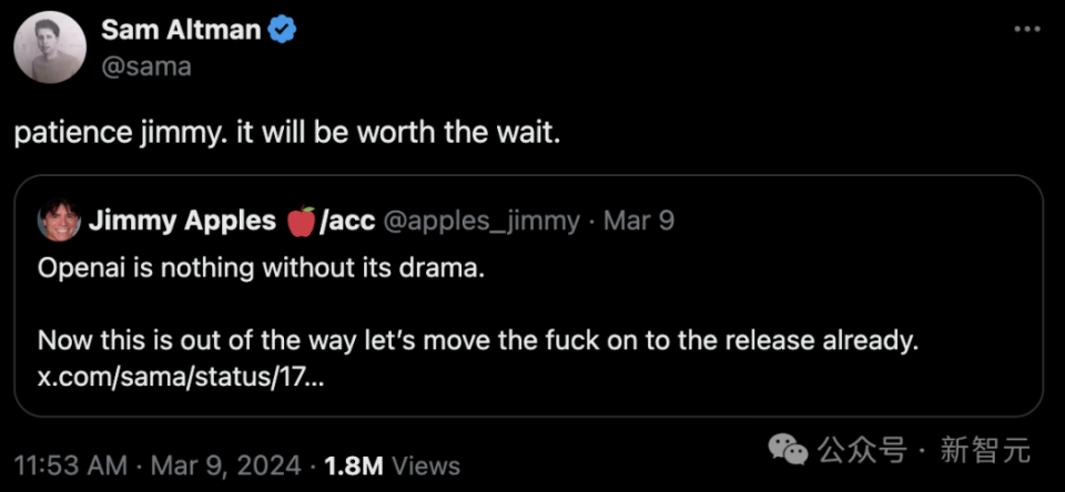 對此,Altman回復:「耐心些,Jimmy。等待是值得的。」