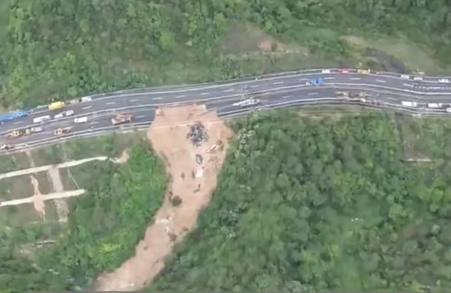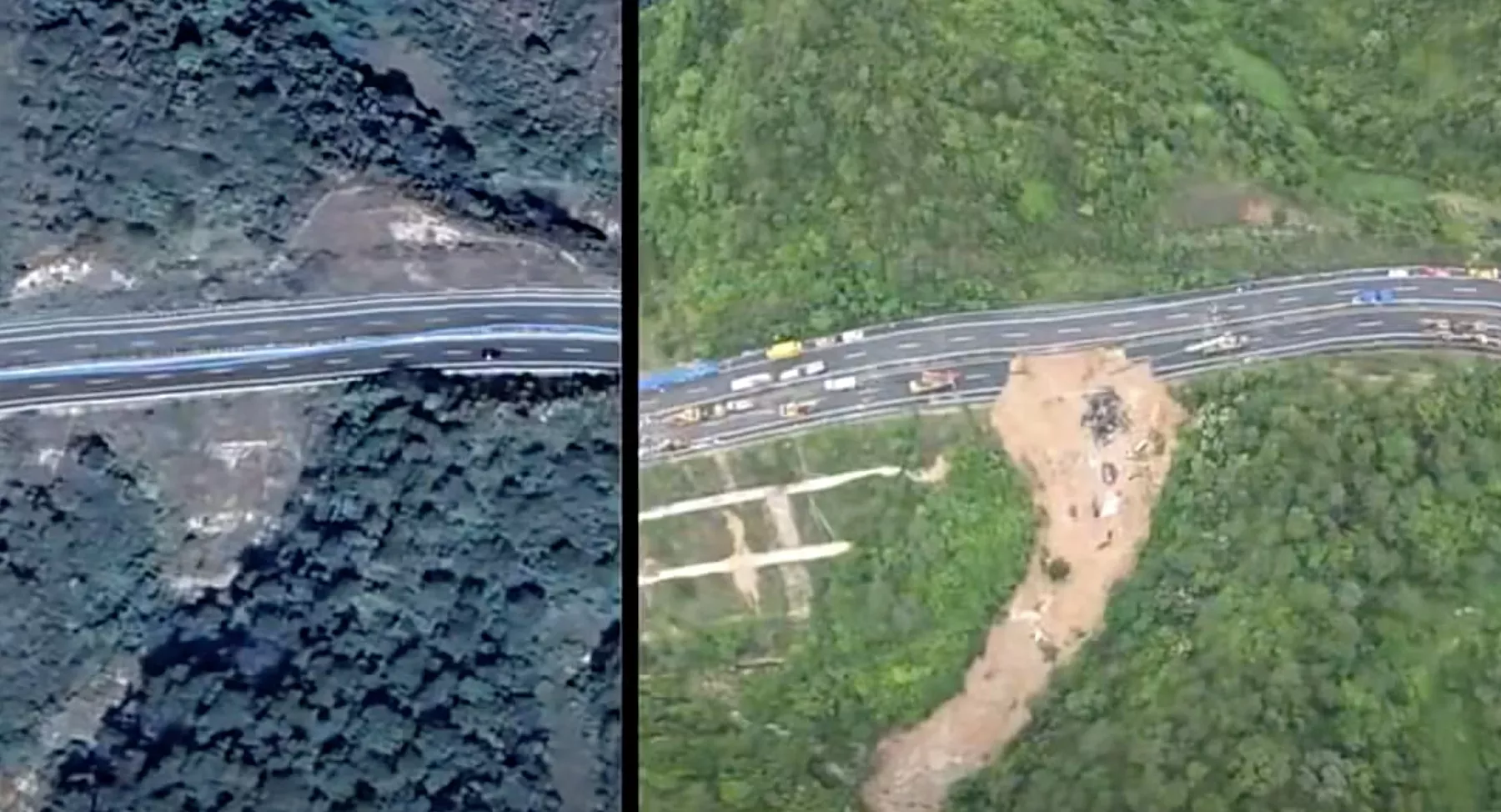 梅龙高速48死 卫星图对比撕裂大坑
