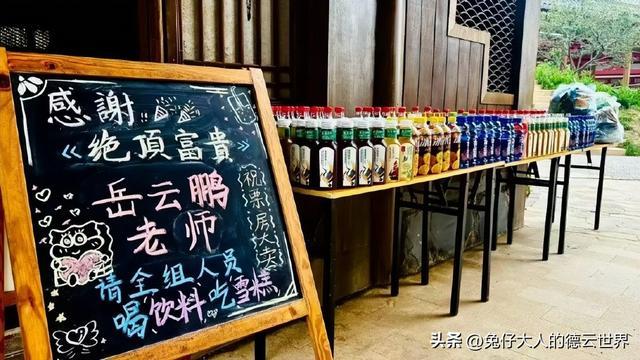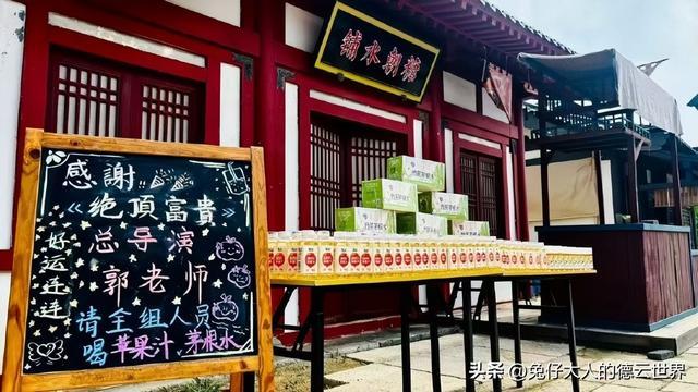《绝顶富贵》在乐陵某影视城拍摄,保密措施还是很到位的。除了一些请客的水牌之外,也就是郭德纲的晒照,张鹤伦的Vlog对场景、服装等有微不足道的透露。粉丝、网友对这部剧是关注的,既然被晒出了的请客水牌多,大家也就认为,剧组的福利还是很好的。戏还没拍几天,演员轮番请全剧组喝水、喝饮料。