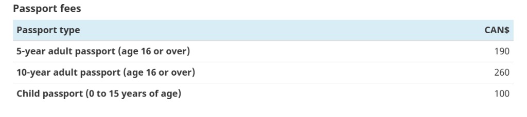 目前,加拿大护照的申请费用如下: