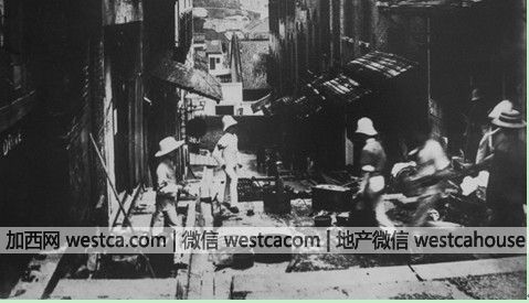 自1841年香港開埠以來,華洋便分區居住,由於島上山多平地少,香港殖民當局就不斷大興土木,並且多次填海造陸,這吸引了大批華人前去務工。1851—1864年間,大清國兵燹四起,太平軍、清軍肆虐華南大地,在此期間有大批華工和商人前往香港避難和謀生。港英殖民政府審時度勢,便將面積不大的太平山區建成華人聚居區。隨著人口愈來愈多,地狹人稠的太平山街區逐漸變成圖中景象:依山而建的二層磚木結構房屋鱗次櫛比,前後排房屋之間往往是一條條狹窄的泥濘街道,分租房屋被房東分割為無窗的微型民居,類似於今天的膠囊房,勞動一天的華工以及本小利薄的小商販每每拖著疲憊不堪的軀殼,回到自己蝸居的家,一年四季還要經受風、熱、暑、濕、蟲等的折磨。當地沒有幹淨的自來水供應,也沒有集中處理糞穢的地方,更沒有像樣的排污下水道,老鼠作為太平山居民家中的常客,人們早已見怪不怪。