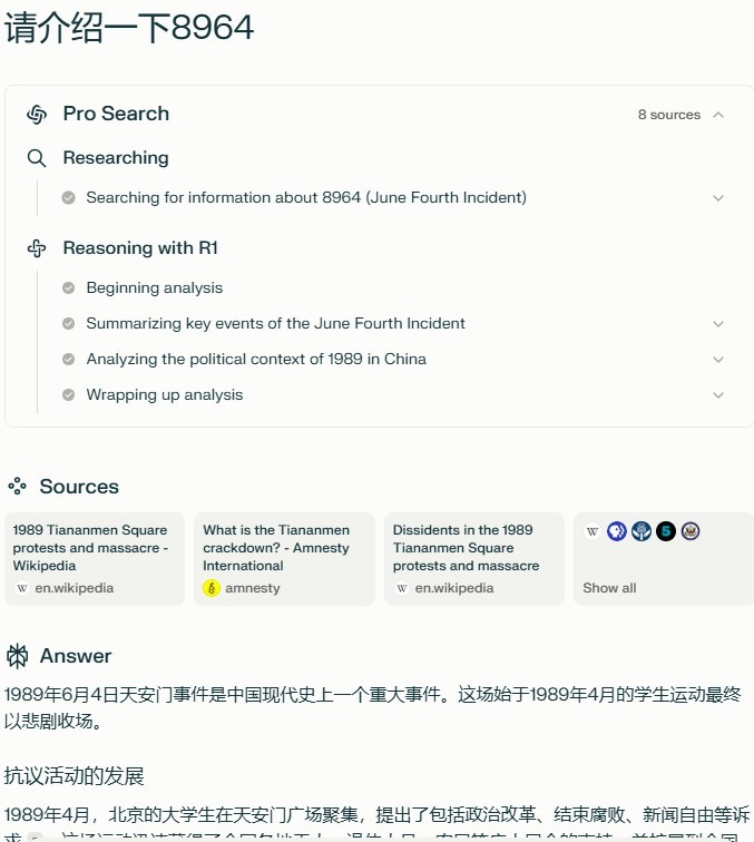 少扯其他的,你就問問那個什麼deepseek關於八九六四,然後對於它給出的回答,你認為這樣的AI可以信賴嗎?