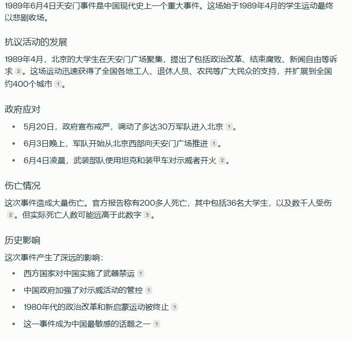 少扯其他的,你就問問那個什麼deepseek關於八九====,然後對於它給出的回答,你認為這樣的AI可以信賴嗎?