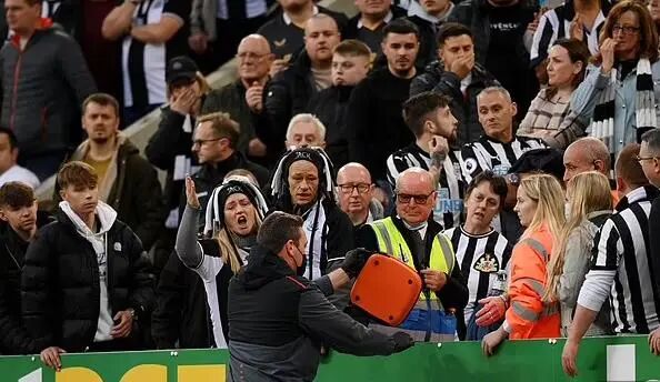 一名紐卡斯爾的球迷,突發心臓驟停,倒在了看台上。