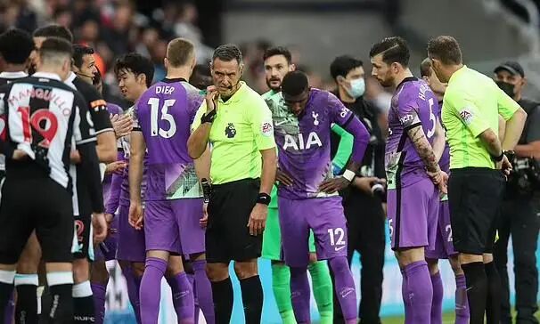 場內,離這一側看台最近的熱刺球星雷吉隆,得知了訊息,他沖向主裁判馬裡納,後者吹停了比賽。