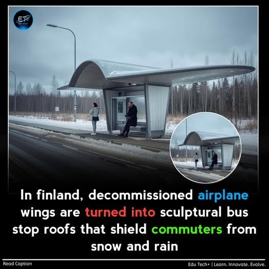 退役的飞机机翼被改造成艺术公交车站屋顶,为通勤者提供遮风避雨的场所