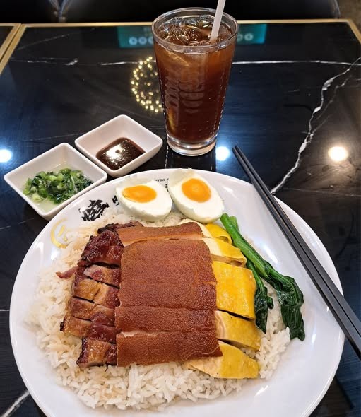 乳豬四寶飯是香港燒味店的經典豪華便當,以皮脆肉嫩的「燒乳豬」為主角,搭配三款經典燒味(常見如叉燒、油雞、燒鴨或燒腩骨)與白飯。