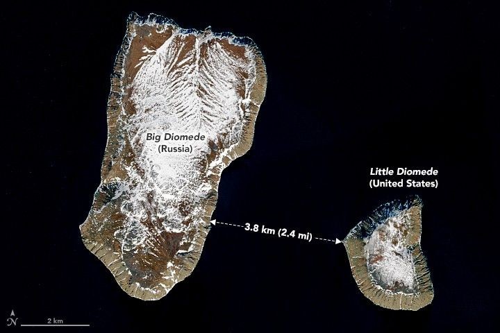 迪奥米德Diomede群岛是俄罗斯和美国领土之间距离最近的点。