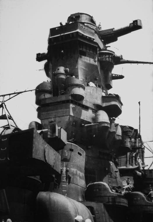 1942年6月至7月,日本战列舰武藏号在德山和吴港之间进行海上试航时的舰桥。
