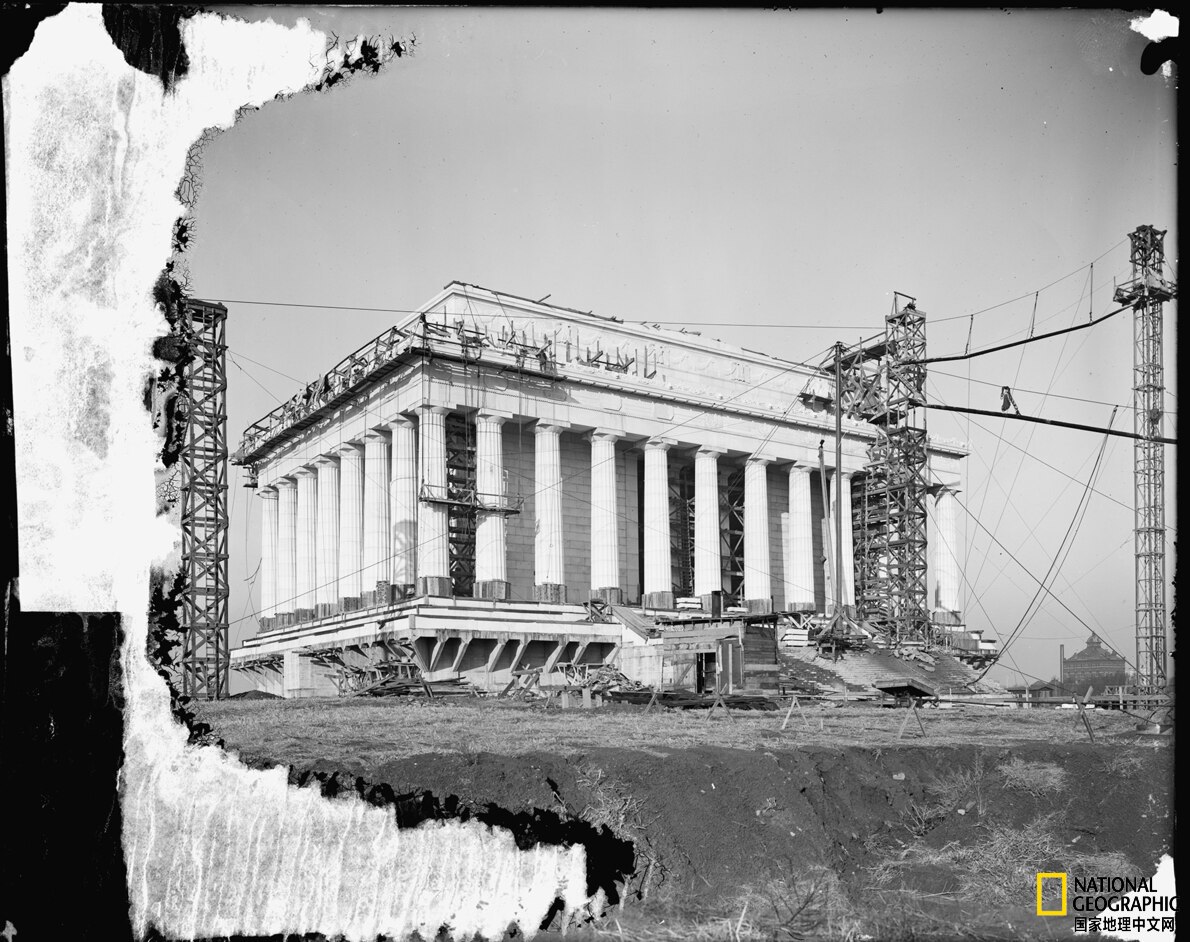建筑师Henry Bacon采用新古典主义风格设计了林肯纪念堂,这是1920年前的施工画面。纪念堂始建于1914年,1922年5月30日竣工。摄影:HARRIS & EWING, LIBRARY OF CONGRESS