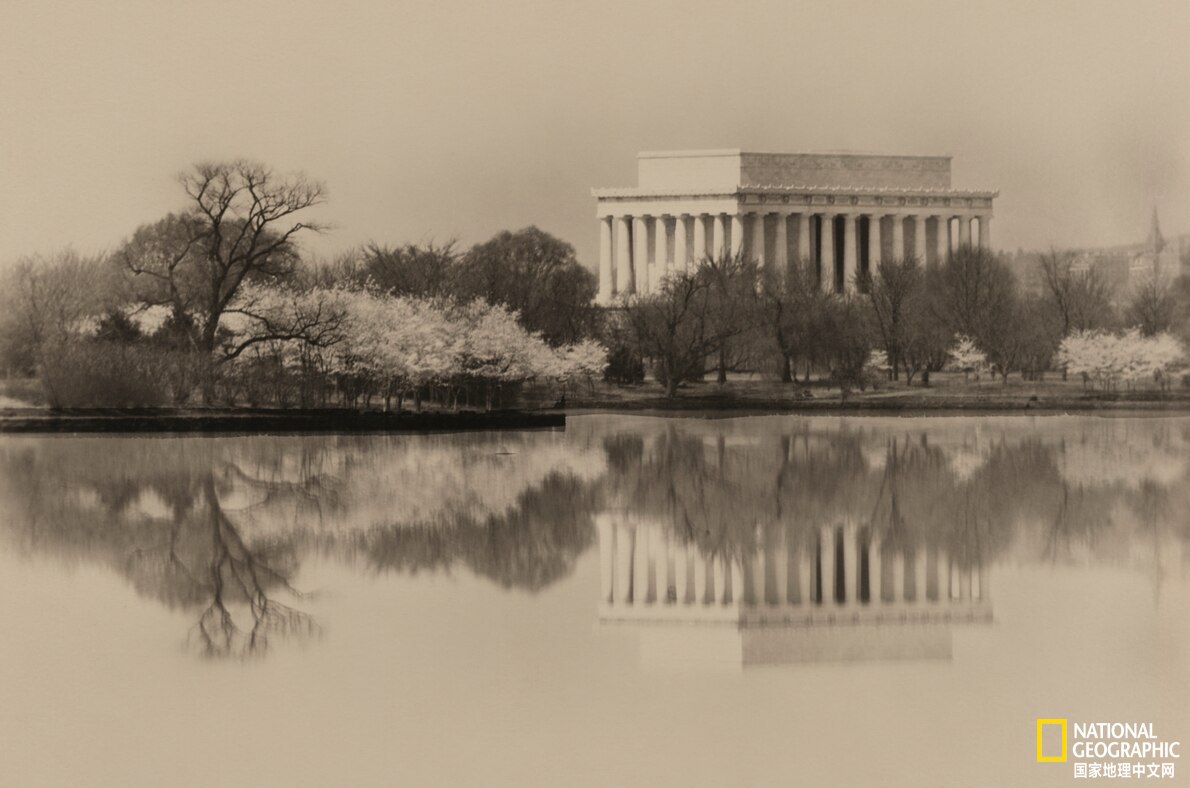在这张未注明拍摄日期的照片里,潮汐湖周围种着不少樱花树,林肯纪念堂耸立在远方。建造纪念堂的大理石来自不同的州,象征着造成分裂的内战结束后,各州又团结在了一起。摄影:ERNEST L. CRANDALL, NAT GEO IMAGE COLLECTION