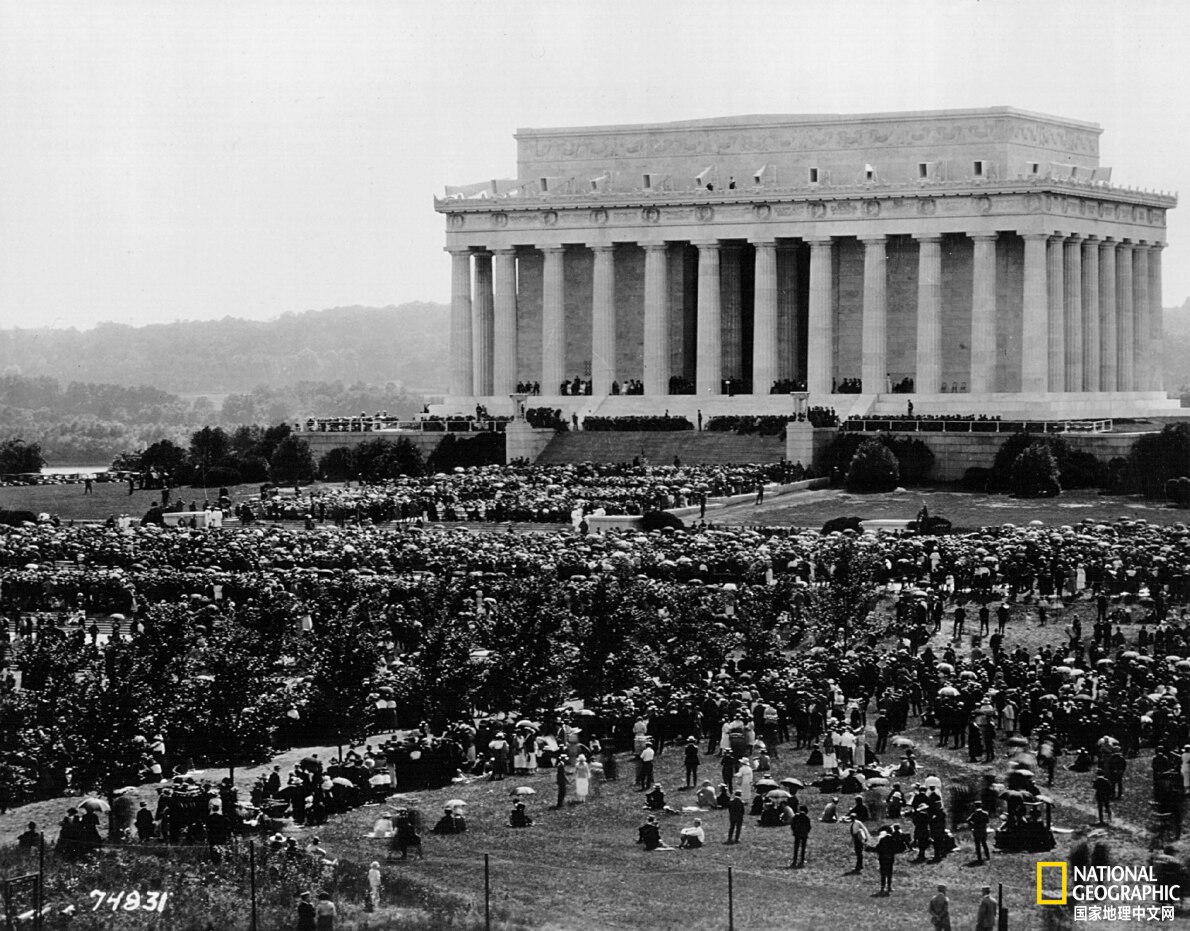 1922年5月30日,在林肯纪念堂的正式落成仪式上,人潮涌动。最高法院首席大法官William Howard Taft主持了仪式,出席仪式的还有总统Warren G. Harding和林肯唯一在世的儿子、78岁的Robert Todd Lincoln。