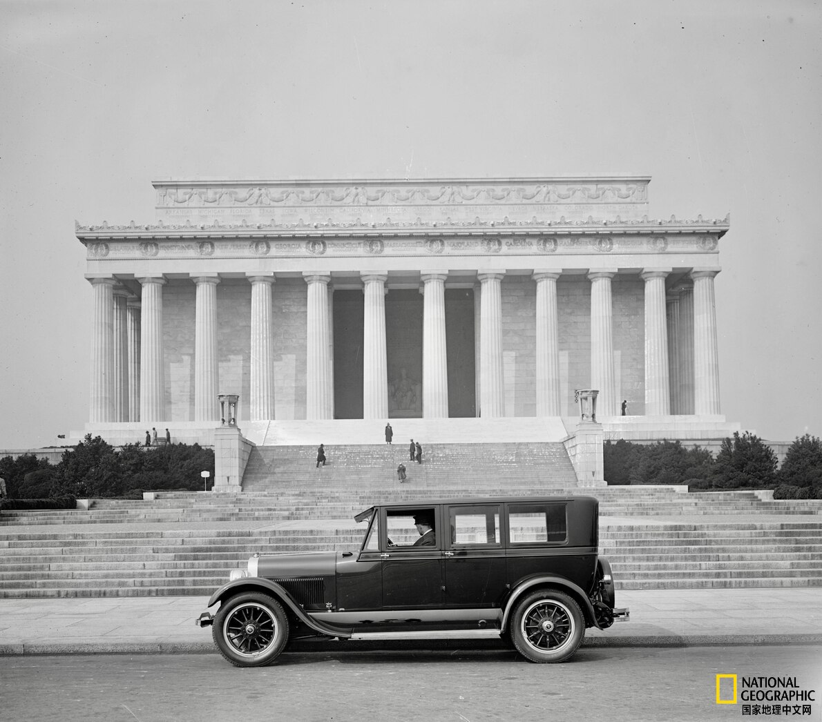 1925年,福特汽车公司的林肯轿车停在林肯纪念堂前。摄影:ALAMY STOCK PHOTO