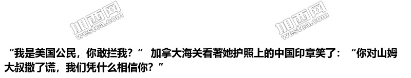 Re: “我是美国公民,你敢拦我?” 加拿大海关看著她护照上的中国印章笑了:“你对山姆大叔撒了谎,我们凭什么相信你?”