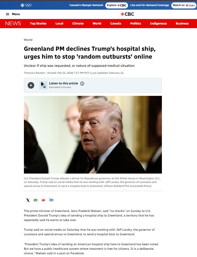 格陵蘭總理拒絕了特朗普提供的醫療船,並敦促他停止在網上“隨意發表言論”。