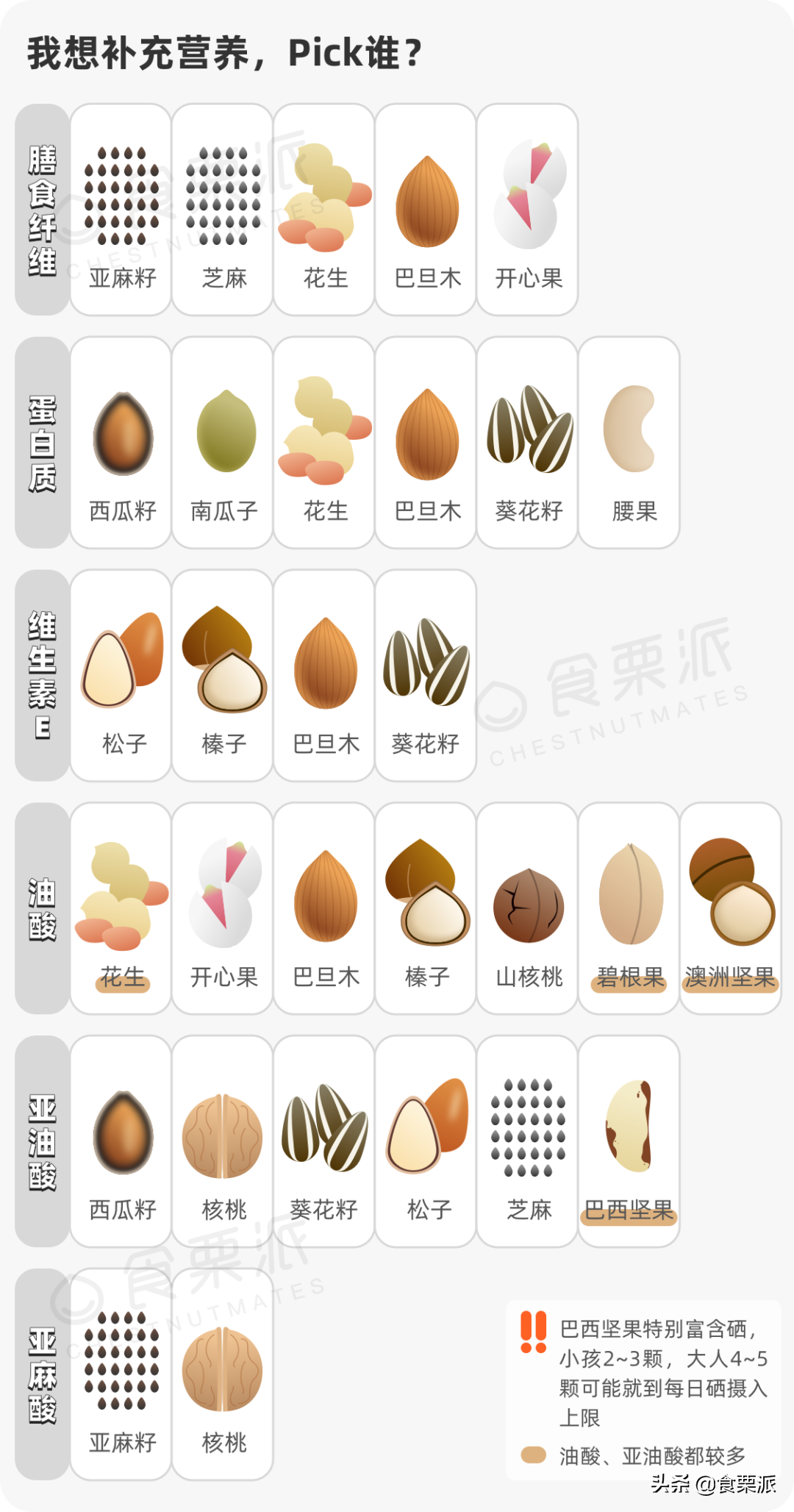 參考資料 [1]美國食物成分庫,椰子肉(170169)、巴西堅果(1100514) [2]中國食物成分庫,山核桃 [3]日本食物成分庫 [4]Selenium,https://www.hsph.harvard.edu/nutritionsource/selenium/ [5] Arya, Shalini S et al. Peanuts as functional food: a review. Journal of food science and technology vol. 53,1 (2016): 31-41. doi:10.1007/s13197-015-2007-9