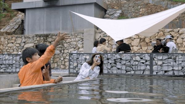在整個酒店最中間的位置,有一個水景露台,風吹過水面便會形成魚鱗紋。這樣不僅可以適當減緩山間的幹燥,也為大家提供了一個戶外聚會的場地。