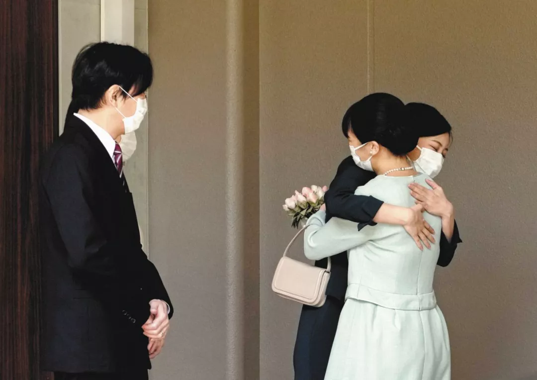10月26日上午10点,真子从位于赤坂御用地的秋篠宫邸乘车出发,出发前,妹妹佳子公主满眼笑意上前拥抱。