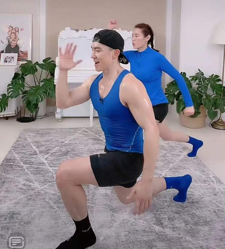 而現在,他在直播間裡活力滿滿地跳著健身操,一個正踢腿,一個反踢腿,一邊催促他的線上學員們:“跟著周傑倫的音樂我們一起動起來,come on!一起燃脂,燃燒你的卡路裡!”