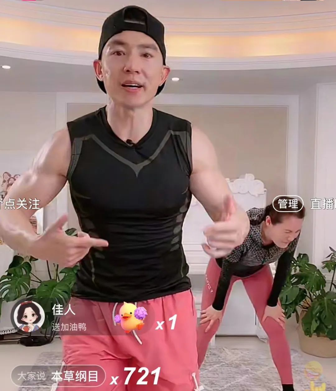 說到當下最紅的健身博主,帕梅拉都要靠邊站了。 每天晚上,上百萬“劉畊宏女孩”都會准時開始跟著直播間裡這位來自中國台灣、年近50歲的藝人,一起來做“擾民”的健身操。  “腰間的贅肉卡卡掉,人魚線馬甲線我都要。” 一首周傑倫的《本草綱目》作為BGM,配上劉畊宏和妻子Vivi魔性的口號,人魚線馬甲線我都要”,無數粉絲紛紛對“毽子操”上頭了。 劉畊宏的漲粉速度堪稱現象級。在50場健身直播後,4月20日,他在抖音的粉絲數達到了1842萬,單周增長數就突破了500萬。結束剛剛這場直播後,4月21日早上,他的抖音粉絲已經突破了2400萬,一晚上就漲粉500多萬。 在抖音上,劉畊宏被網友開玩笑稱為健身界的李佳琦,兩人組成了“謀財害命”組合,一個“傷害”大家的身體,一個“傷害”大家的錢包。4月19日,李佳琦還在直播間裡表演了一出“瓶子打不開需要劉畊宏老師來開”的戲碼,成功實現了一次夢幻聯動。 為了搞明白他為何能從無數健身博主中脫穎而出,我在周三晚上的19:30准時點開了他的直播間,決定跟他一起跳90分鍾。 跳完毽子操, 我人廢了 除了劉畊宏和Vivi,60多歲的岳母也出現在了這晚的直播間裡,和大家一起跳操。這也確實符合他在直播間裡一直喊的口號:不管是長輩還是小孩子,全家人都可以一起參與到這次健身中來。  劉畊宏直播間裡的健身動作並不復雜,以最為經典的“毽子操”為例,只要認真跟著他做上幾個節拍,基本就能掌握動作要領。最開始的幾組動作,平時並不怎麼鍛煉的我也能輕松跟上,強度似乎不如“人間AI”帕梅拉的視頻。畢竟在帕姐的手下,我可從來沒有堅持超過20分鍾。 和大多數健身時面無表情的博主相比,劉畊宏跳起操來歡樂得仿佛跳上了廣場舞。一邊激情跳操,一邊高喊口號,觀眾真的很難不被他的熱情感染。 到30分鍾左右時,直播間的在線人數超過了290萬。連續的運動讓我感到了一絲疲憊,劉畊宏的岳母也在視頻中表示自己有點堅持不住了。 就在我以為會迎來一段時間的休息時,劉畊宏在直播間裡宣布,今天的熱身結束了,運動即將正式開始。欲哭無淚的同時,我不忘看了一眼彈幕,大家和我一樣驚訝:做了這麼久,原來還沒有正式開始? 60分鍾以後,我的腿已經像灌了鉛一樣沉重。不過聽著劉畊宏和Vivi充滿激情的口號,我實在不好意思停下來,仿佛少抬一次腿也是對他們的不尊重。我此時的表情就像是直播中的Vivi,每做一個動作都要戴上一次“痛苦面具”。 戴上“痛苦面具”的Vivi
