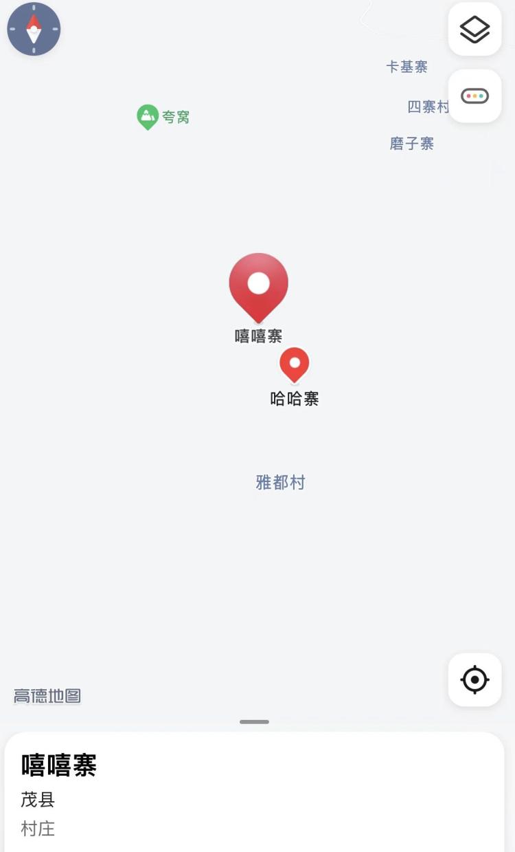 阿坝州茂县的嘻嘻寨和哈哈寨。/高德地图