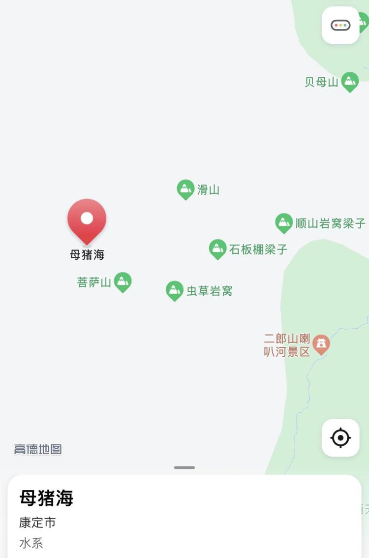 康定的母猪海紧挨着菩萨山,看来是有福气的猪猪了。/高德地图