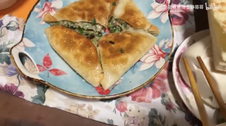 成为全职爸爸后,刘静增添了很多技能。图为刘静在家自己做的饼。/bilibili@全职爸爸博士静哥哥