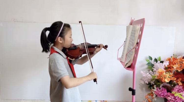 刘静的女儿在练习小提琴《摇篮曲》。/bilibili@全职爸爸博士静哥哥