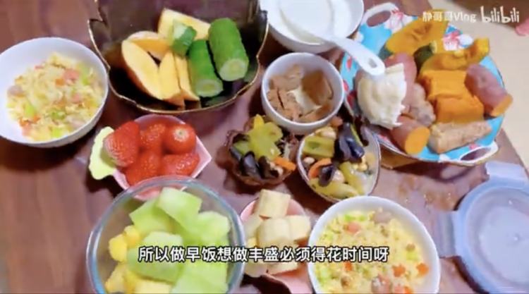 刘静为家人准备的早餐。/bilibili@全职爸爸博士静哥哥