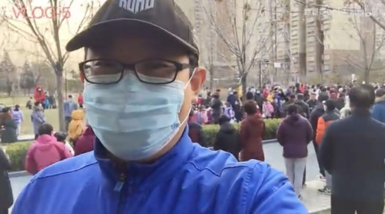 刘静在校门口等待女儿放学。/bilibili@全职爸爸博士静哥哥