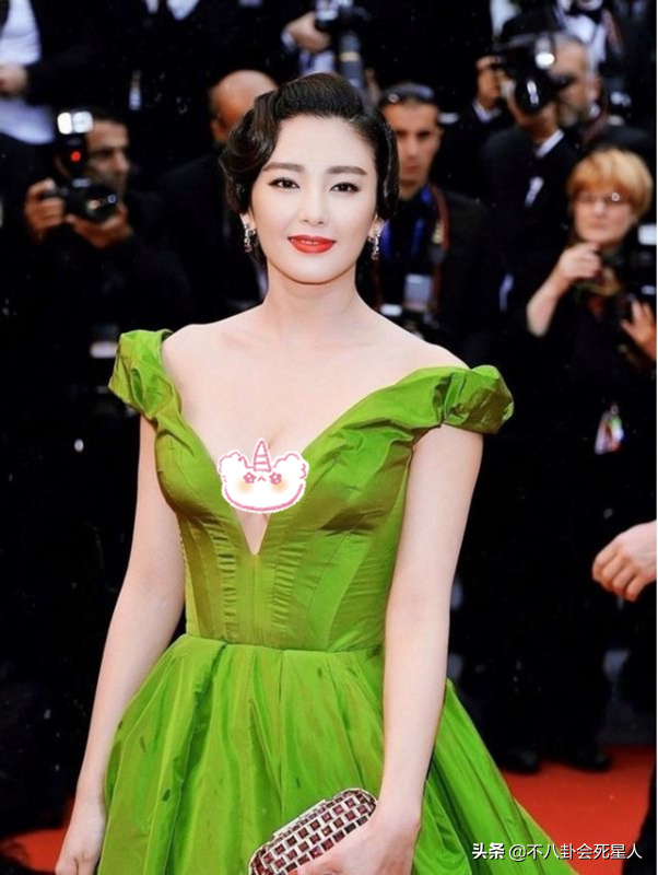 当年张雨绮在戛纳红毯上,穿着绿色深V礼服裙现身,至今还被封为“神仙红毯现场”,这套造型也确实可以封神了。