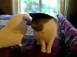 豆腐貓杯具了~~慘遭流氓鳥的毒手~~