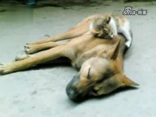 感人流浪狗背小貓覓食