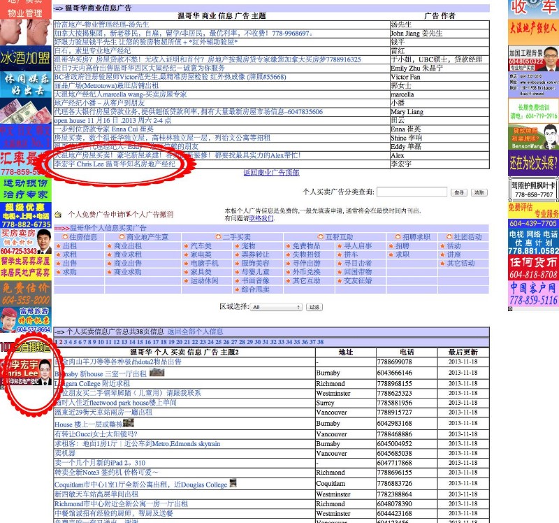 李宏宇在温哥华大范围投放广告(部分样本截图),