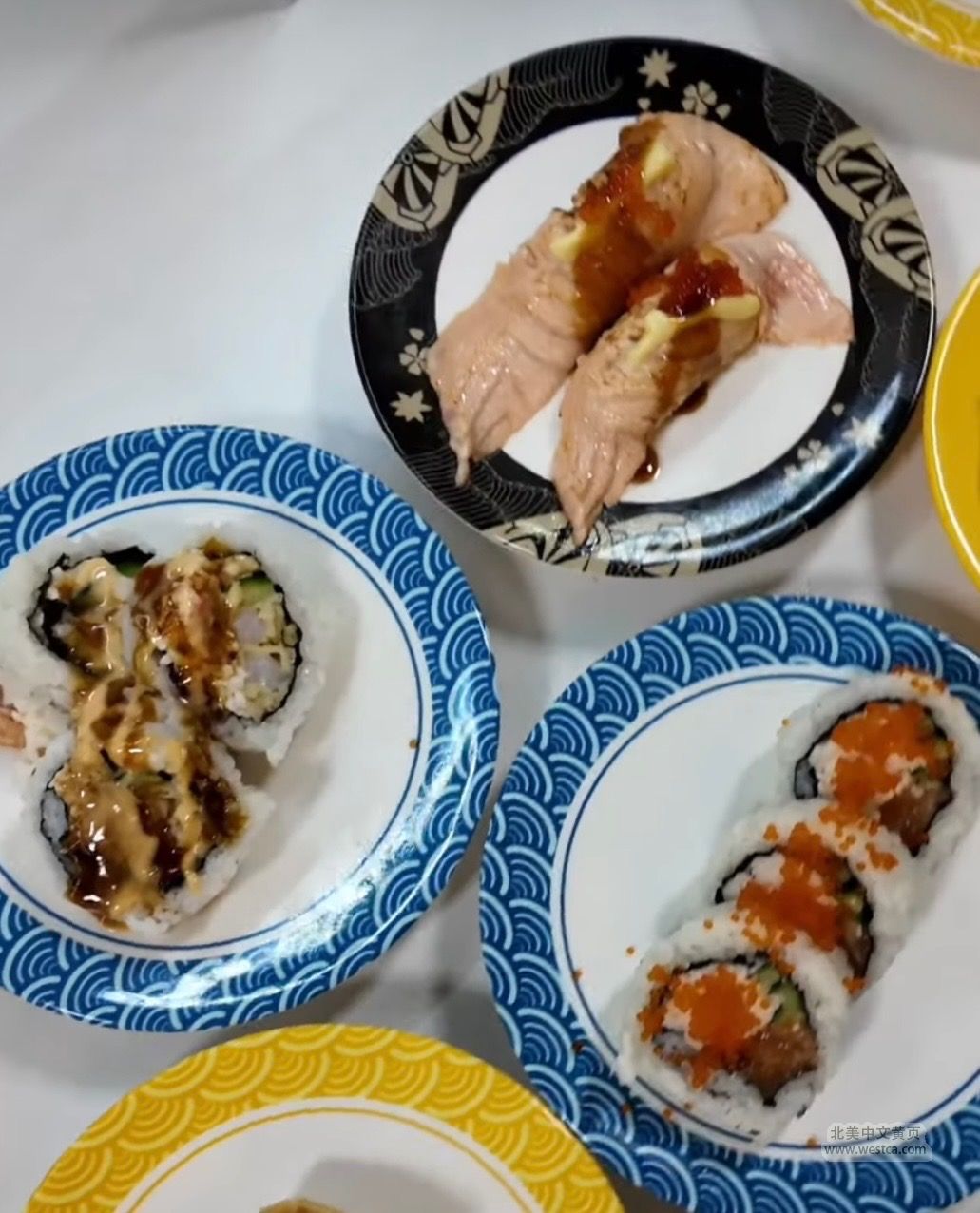 这种以履带周而复始循环推送菜肴的方式蛮有意思,食客觉得有趣,店主可以节省人力成本,双赢哈